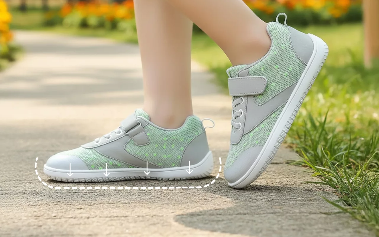 Ortorex barfotaskor absorberar stötar och minskar trycket på häl och tår. De håller de små bekväma under promenader, även på hårt underlag.