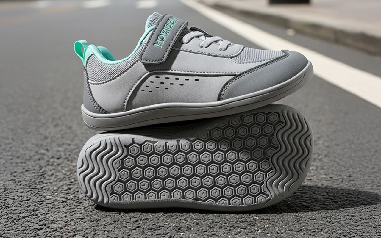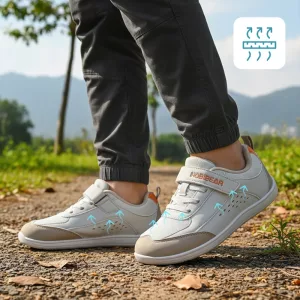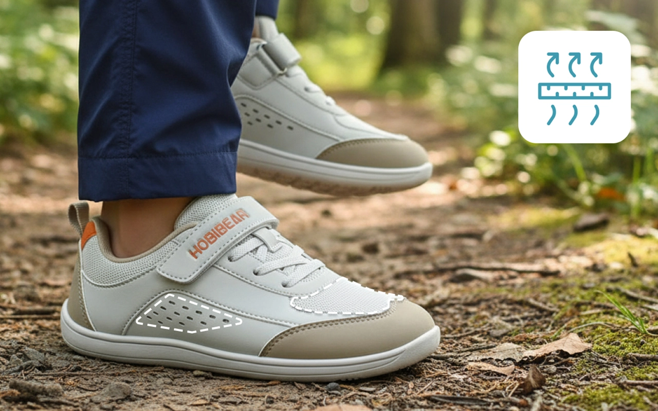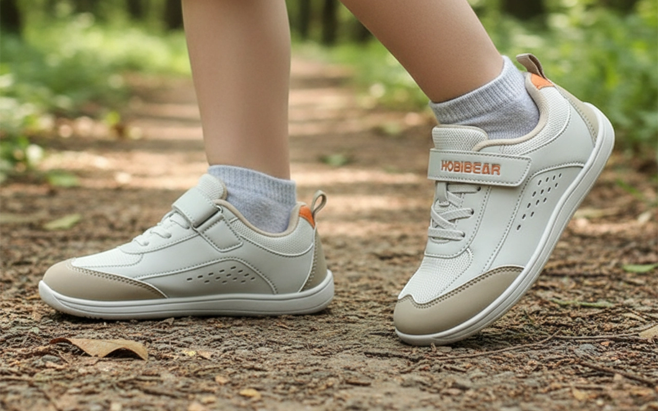 Barns fötter håller sig avslappnade eftersom tårna aldrig känns trånga. Naturlig spridning förbättrar balans och komfort på alla underlag.