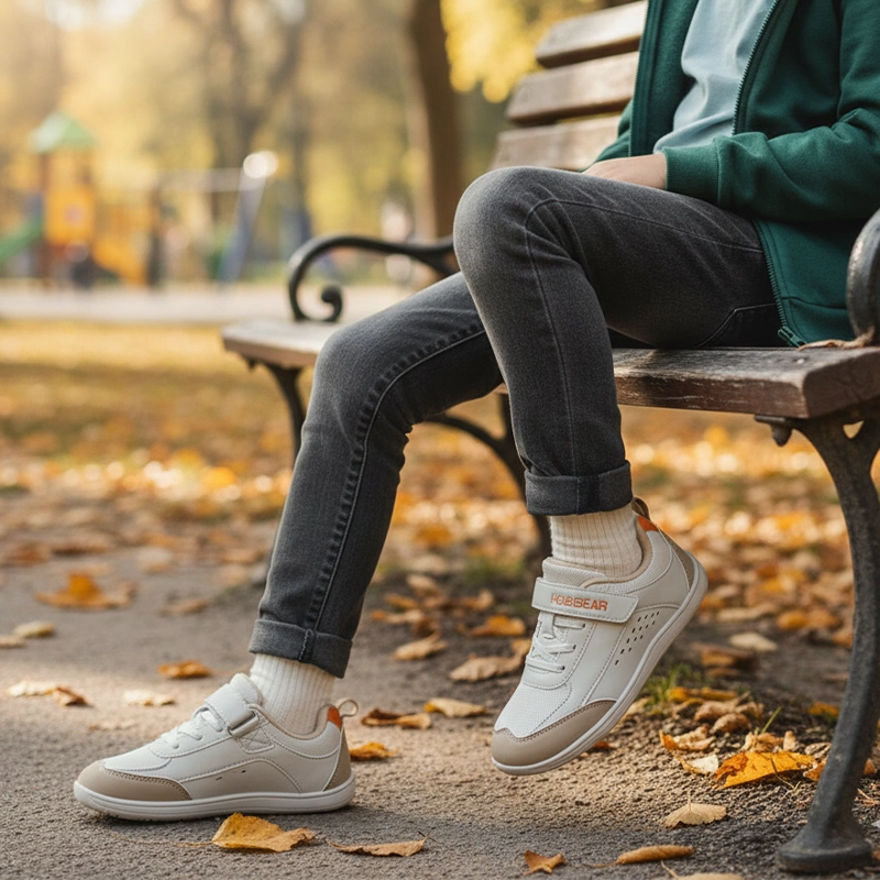 Barns fötter håller sig avslappnade eftersom tårna aldrig känns trånga. Naturlig spridning förbättrar balans och komfort på alla underlag.