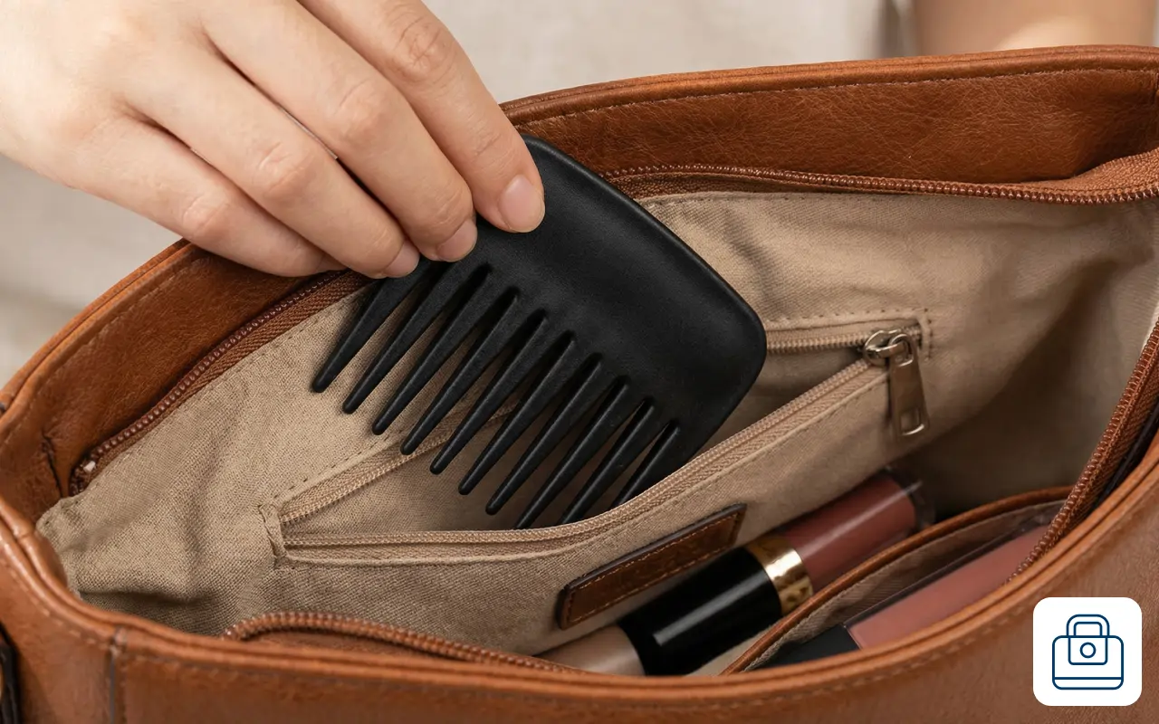 Minikammen har precis rätt storlek för min väska. Den reder ut vindtrassligt hår och känns skön, inte vass eller hård. Perfekt efter fotbollsmatcher.