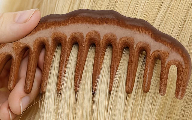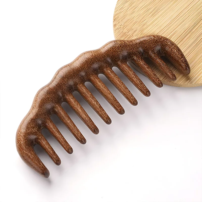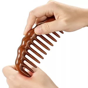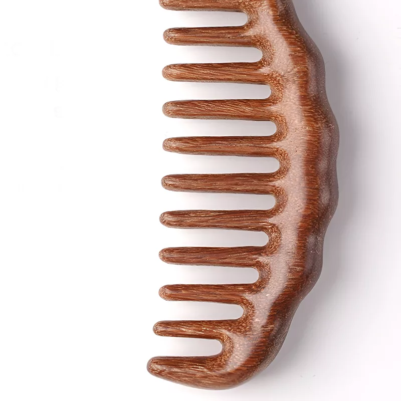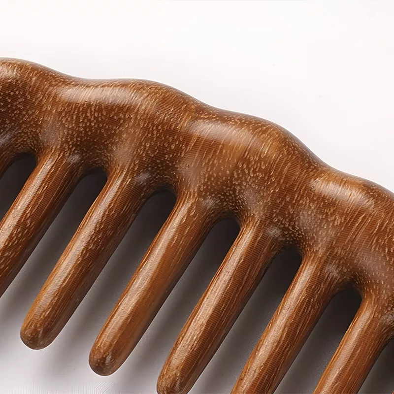 Jag har lockigt hår denna träkam sliter eller bryter aldrig av mina hårstrån. Mitt hår ser faktiskt mindre frissigt ut efter att jag använt den!