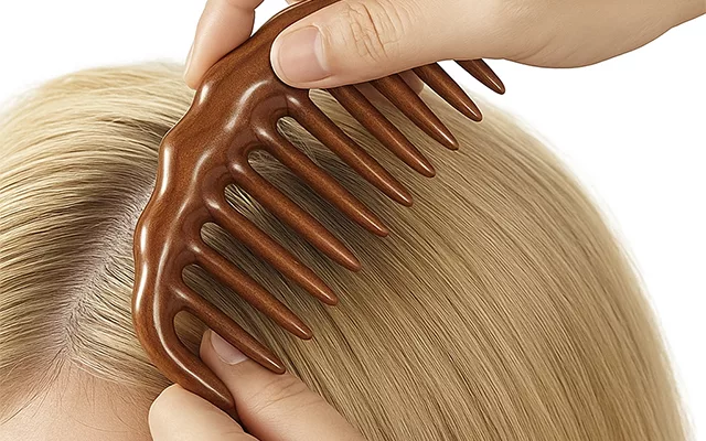 Ortorex-kammen glider smidigt och gör den dagliga vården skonsam och enkel. Tillverkad av gyllene sandelträ, skyddar den både hårstrån och hårbotten. Dess genomtänkta design förhindrar slitage, vilket ger ett välvårdat och friskt hår.