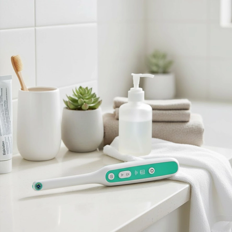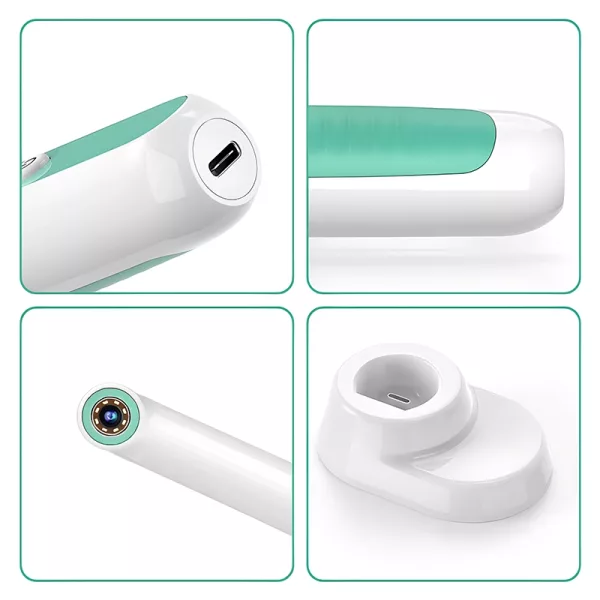 Kontrollera tänder och tandkött enkelt med denna smarta enhet. Enkla kontroller gör munsyn inspektioner snabba och stressfria. Lätt design som ligger bra i handen så att även barn kan använda den bekvämt. Var förberedd på oväntade tandproblem hemma.