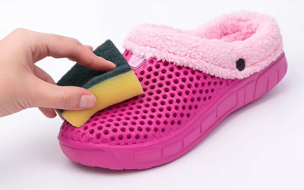Materialen står emot fläckar och smuts och gör rengöringen enkel. Njut av fräscha, rena tofflor även efter många användningar.