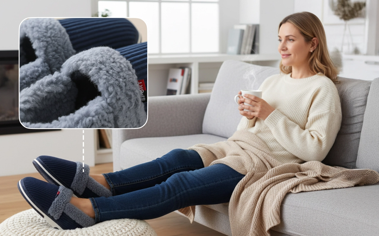Mjuk plyschfodring håller varje tå varm och stödd, alltid. Upplev värme som aldrig försvinner, även under de kallaste kvällarna.