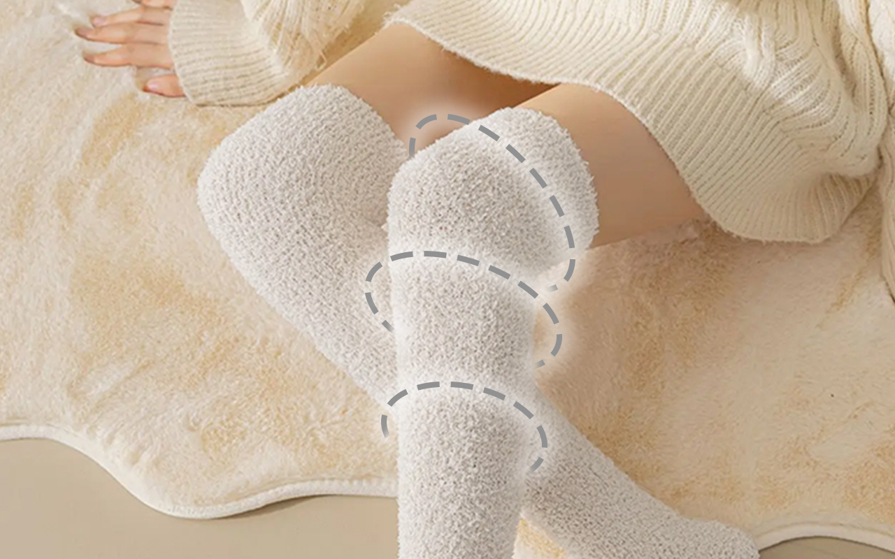 Dessa varma strumpor omfamnar benen utan att sitta för hårt. Ingen kliande känsla, bara mjukt och bekvämt hela kvällen. Jag rekommenderar dem för kalla vintrar.