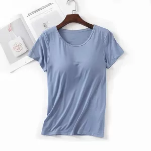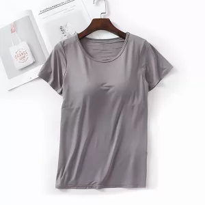 Denna två-i-ett T-shirt eliminerar behovet av en sport-bh. Den ger utmärkt stöd, ger komfort och ökar ditt självförtroende.
