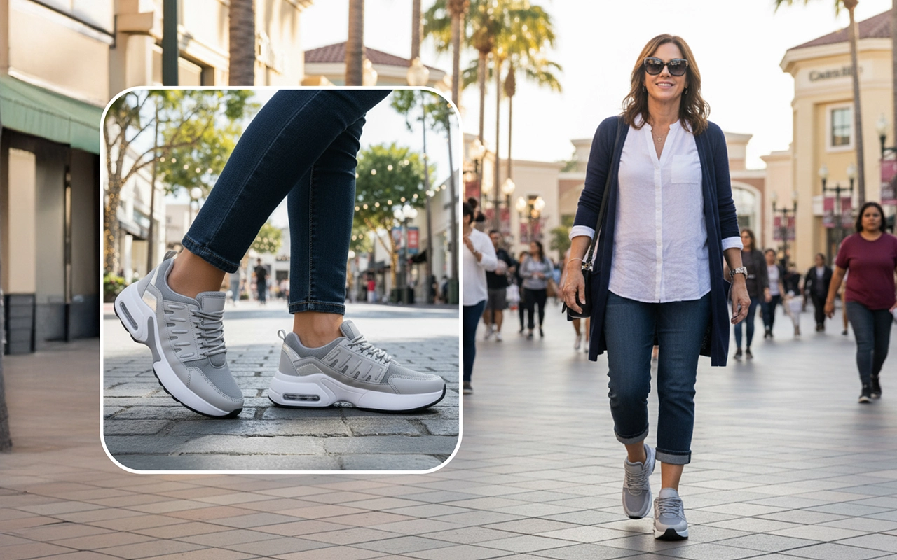 Gå ut och känn dig lätt och stöttad hela dagen. Ortorex-skorna gör det enkelt att promenera på alla underlag. Passar bra med jeans, kjolar eller klänningar.