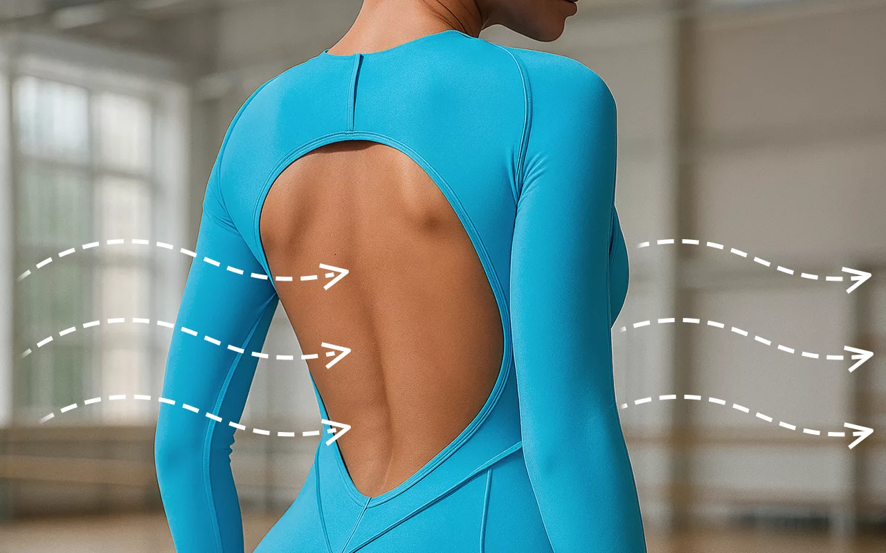 Öppen ryggdesign ökar luftflödet och förhindrar överhettning. Håll dig torr och fräsch oavsett om du stretchar eller springer.