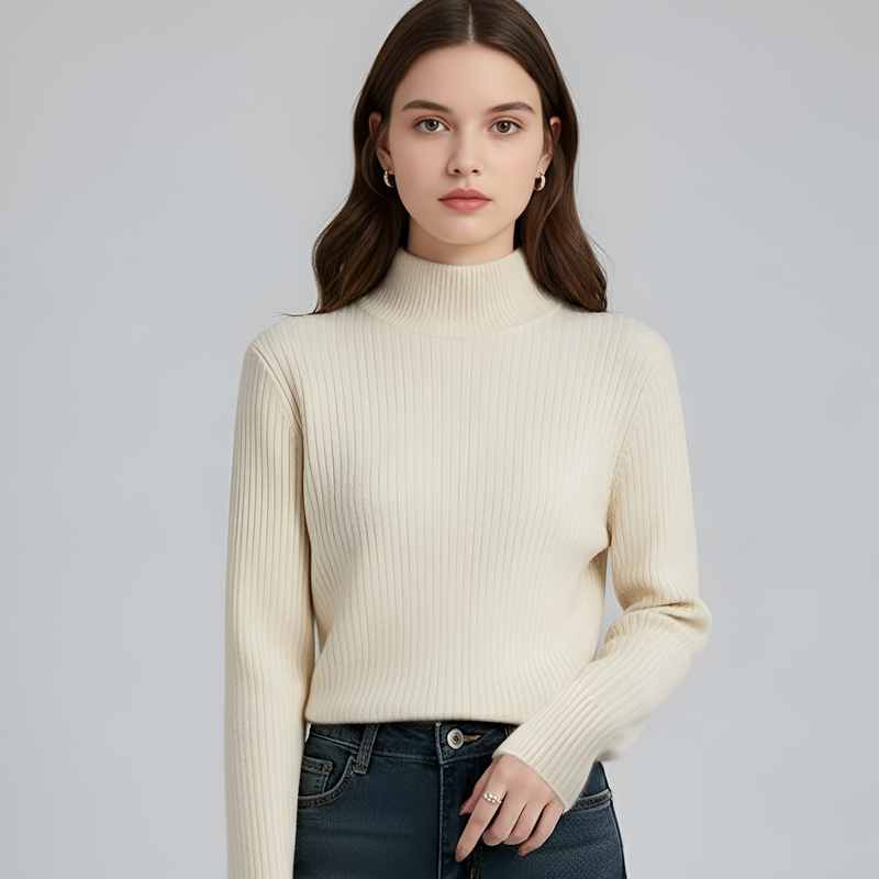 Var osäker på halsen, men den är superbekväm! Varm och stretchig, med ett mjukt foder. Ser riktigt snygg ut instoppad i byxor.