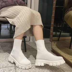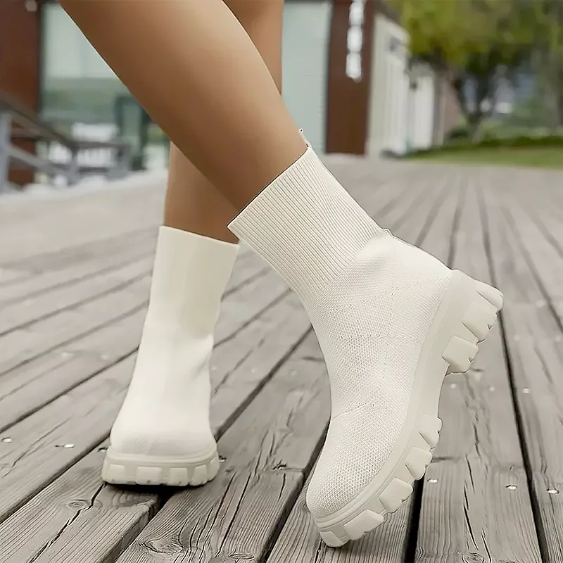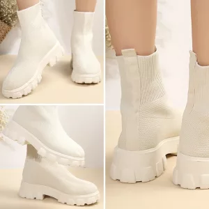 Förvandla höst- och vinterlooken med Ortorex-stövlar. Dessa platåskor håller fötterna varma under de svalare månaderna. Njut av enkel matchning med vardagsoutfits för en modern touch. Varje steg känns mjukt tack vare den flexibla stickade strukturen.