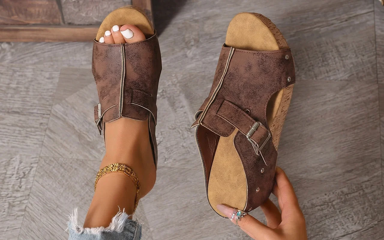 Jag har breda fötter och ogillar vanligtvis klackar, men dessa kilar ändrade på det. Den mjuka sulan och enkla slip‑in‑stilen gör sommaroutfits helt bekymmersfria.