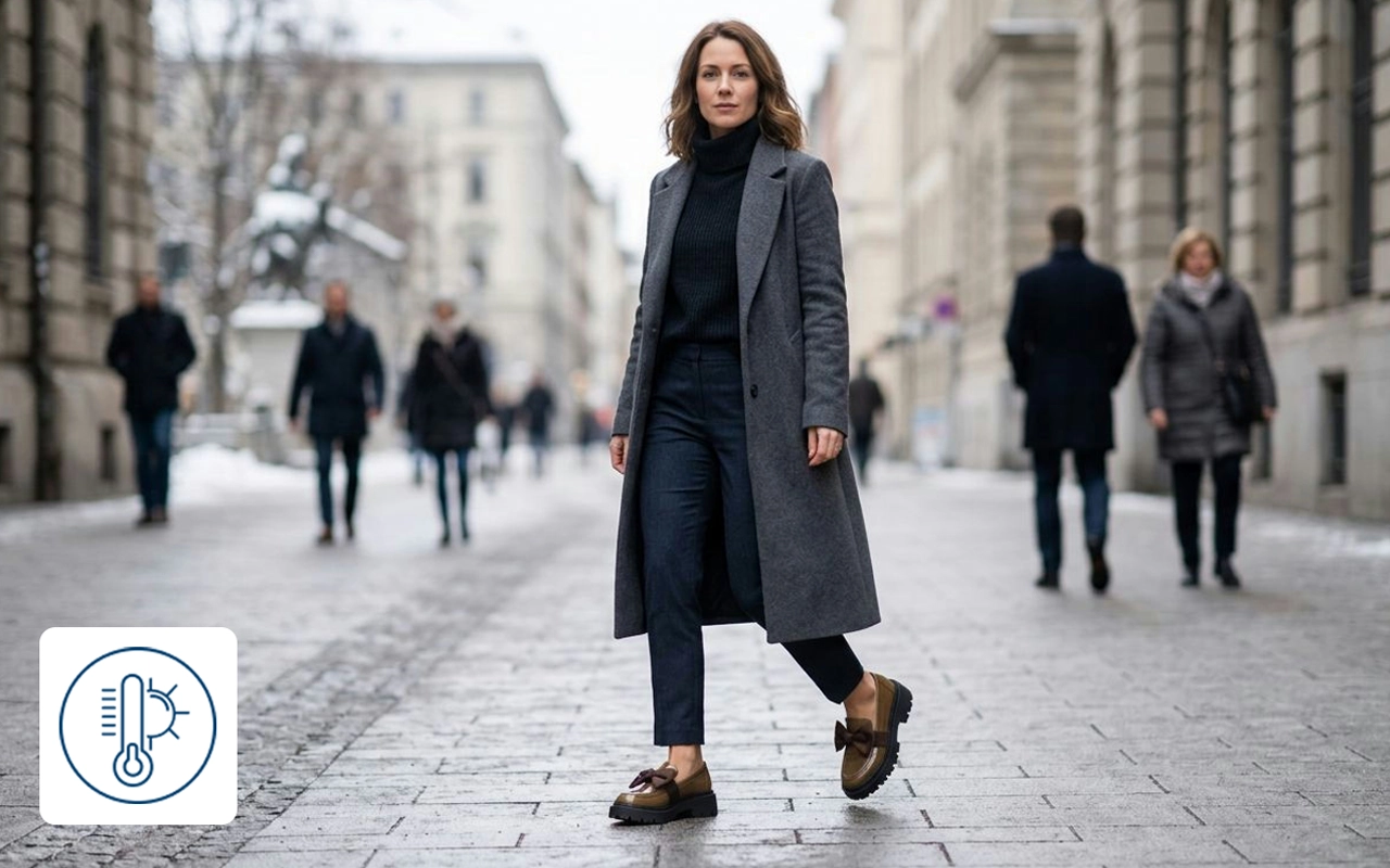 Jag matchade loafersen med strumpbyxor och klänning på en middagsdejt. Mina fötter höll sig varma på vägen hem och den kraftiga klacken kändes stadig hela kvällen.