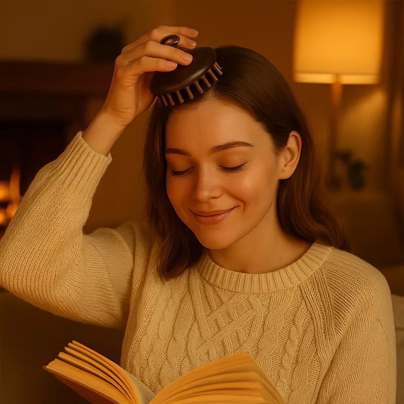 Massagekammen hjälper mig att slappna av så mycket, särskilt efter stressiga arbetsdagar. Min hårbotten känns mindre spänd och mitt hår känns starkare.