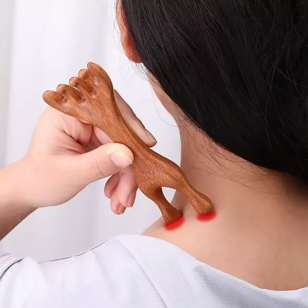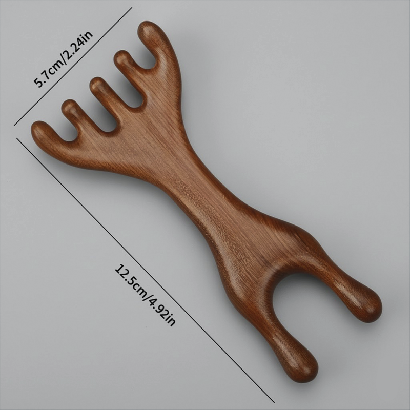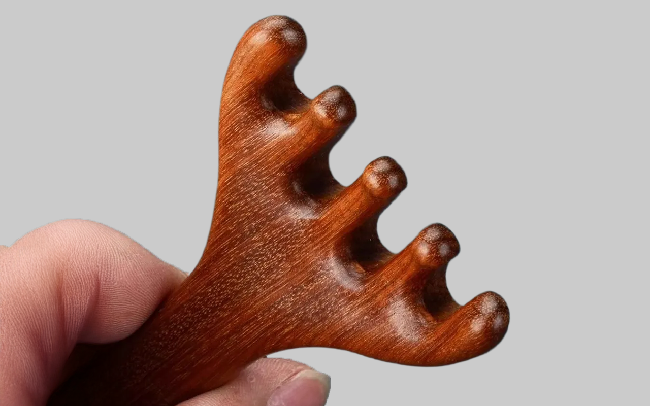 Jag använder den efter sport för att slappna av. Tänderna är rundade och skonsamma, och jag gillar verkligen att den är gjord av riktigt trä, inte plast.