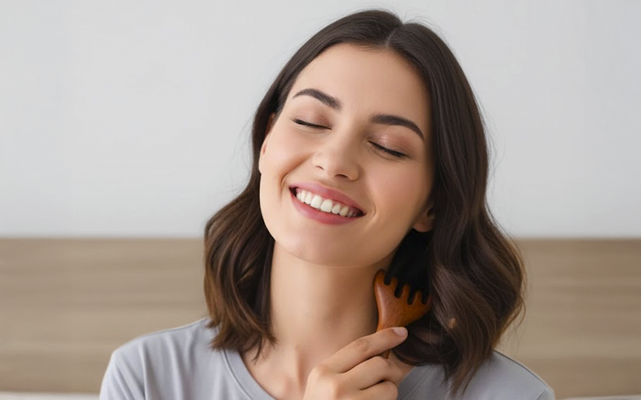 Mjuka, rundade tänder masserar huden och lindrar spänningar. Känn dig uppfriskad när stressen smälter bort med varje drag.