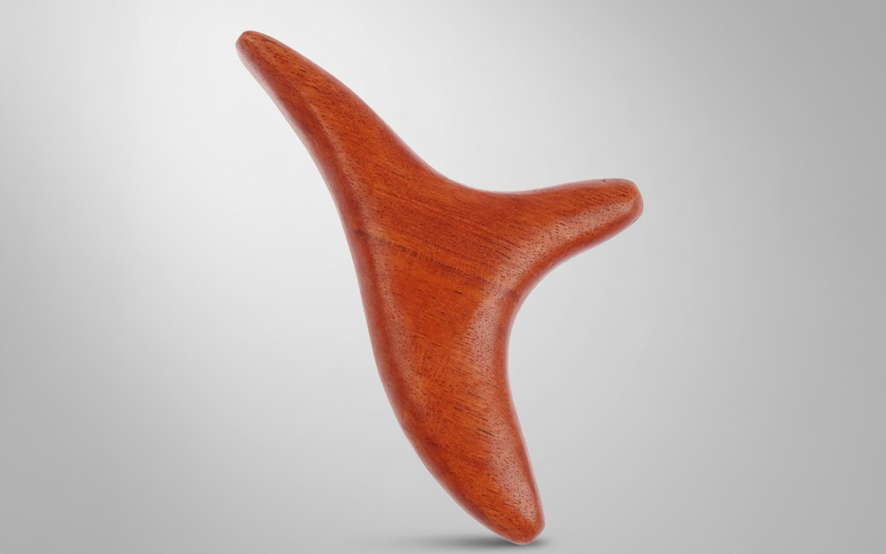 Trötta muskler lugnas efter användning av denna trä-massör. Den glider smigt och hjälper till att lindra värk över ansikte, nacke och ben.