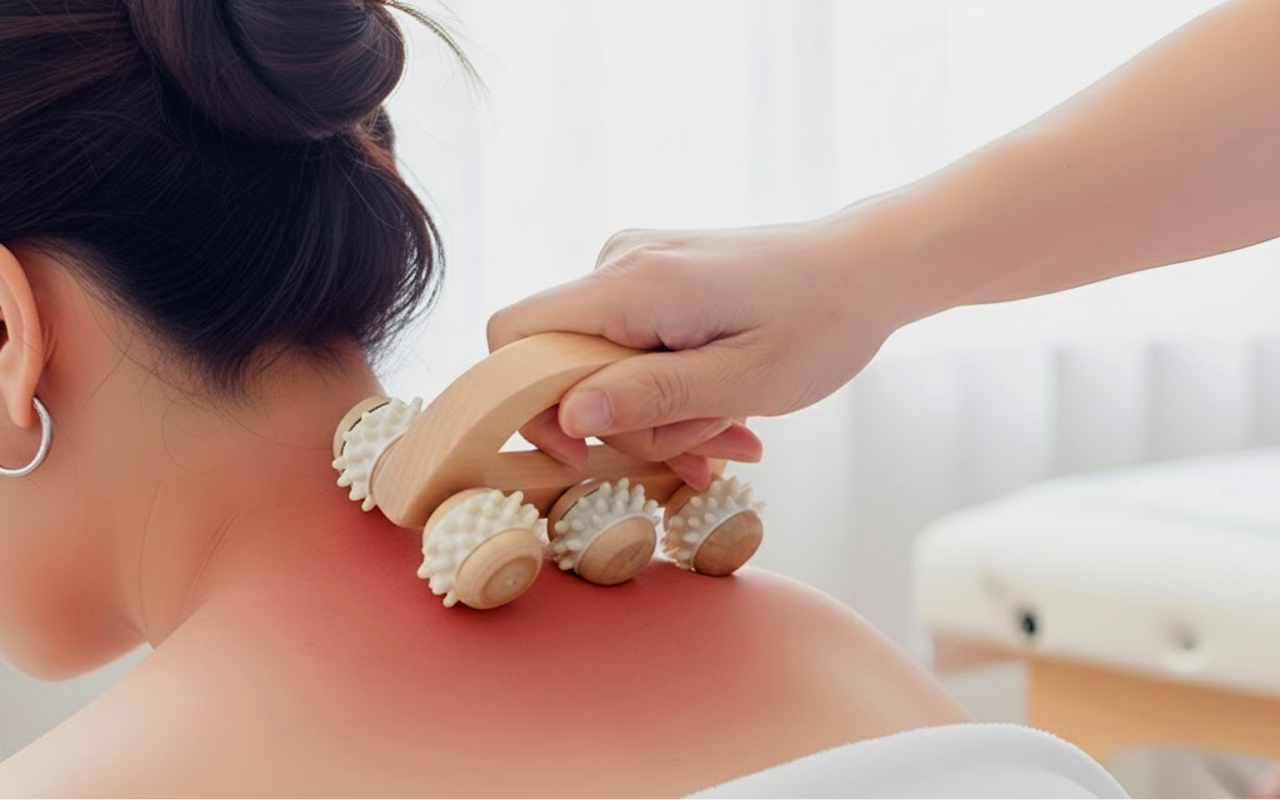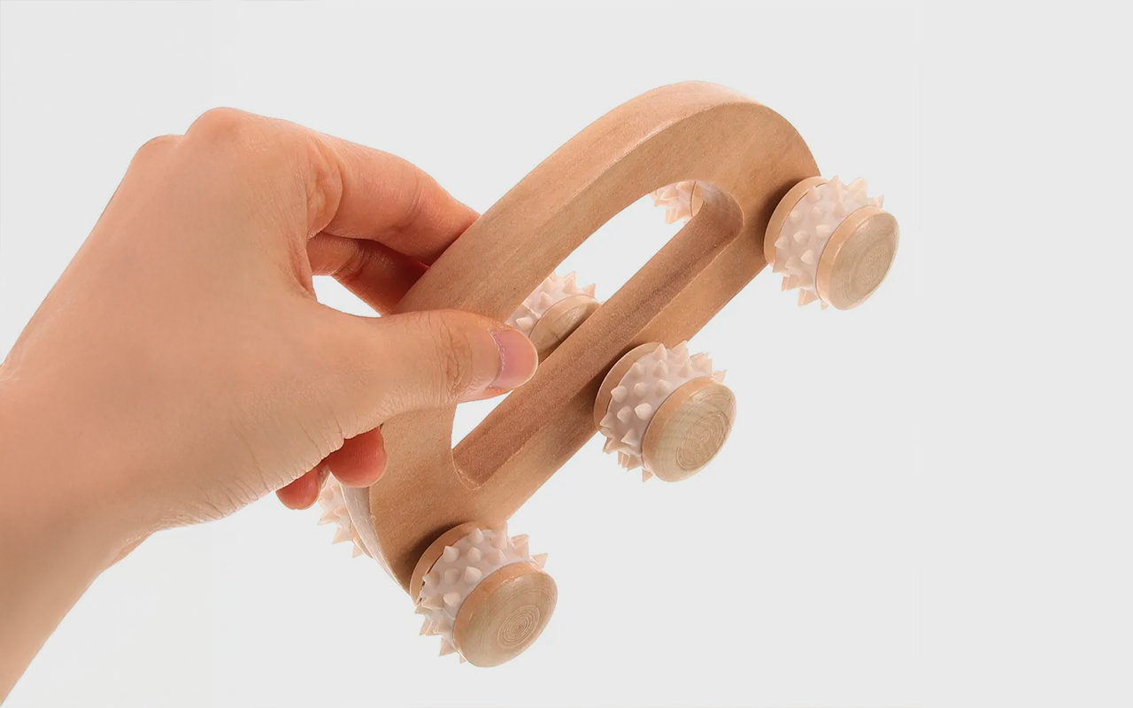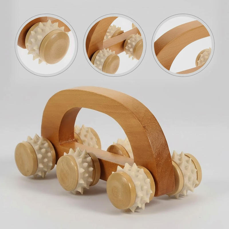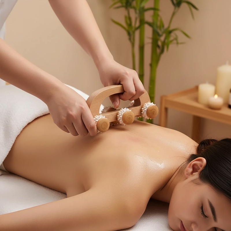 Miljövänlig träkonstruktion innebär att inga hårda plaster rör huden. Mjuka silikonspetsar gör varje session avslappnande och säker.