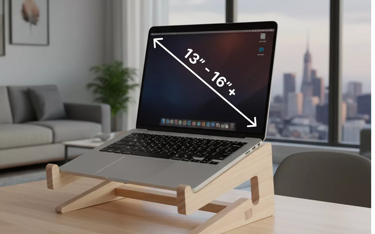 Vårt träställ är kompatibelt med de flesta storlekar på laptops och tangentbordstyper.