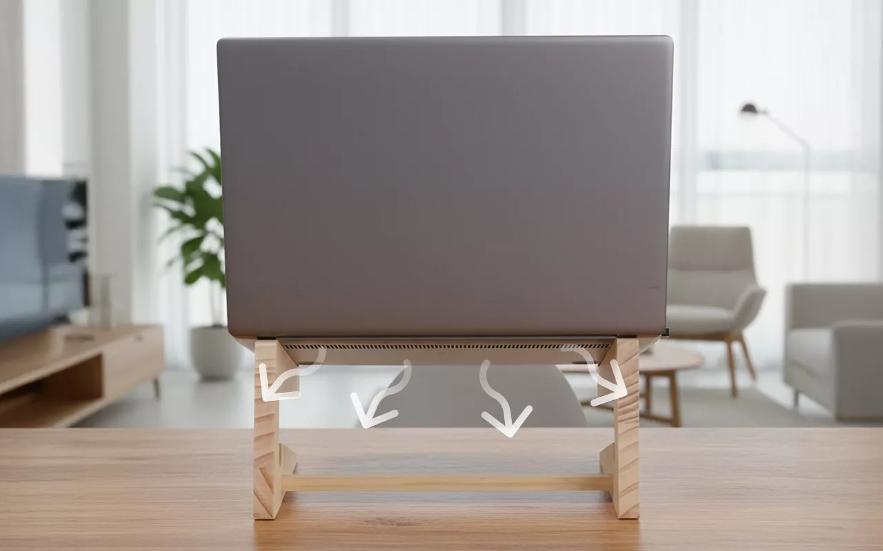 Detta ställ smälter in med all slags inredning hemma. Mina handleder känns bättre och den luftiga designen gör att laptopen inte överhettas.