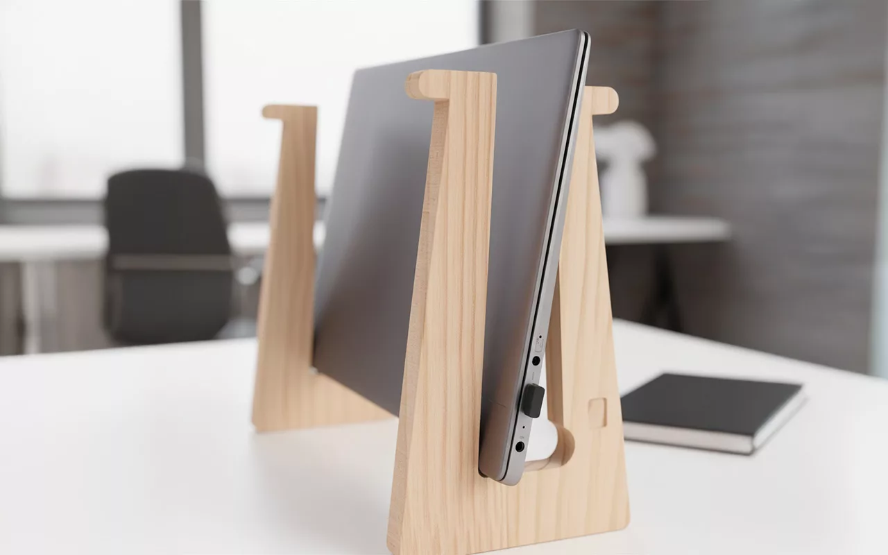 Jag använder både en stor och en liten laptop, och båda får plats bra på denna hållare. Lätt att rengöra och ger en naturlig känsla.