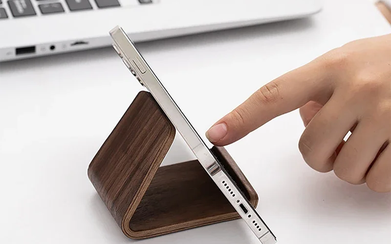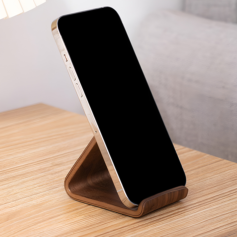 Jag använder denna lilla träställ varje dag på mitt nattduksbord. Telefonen ramlar aldrig, och jag kan se skärmen tydligt från sängen.